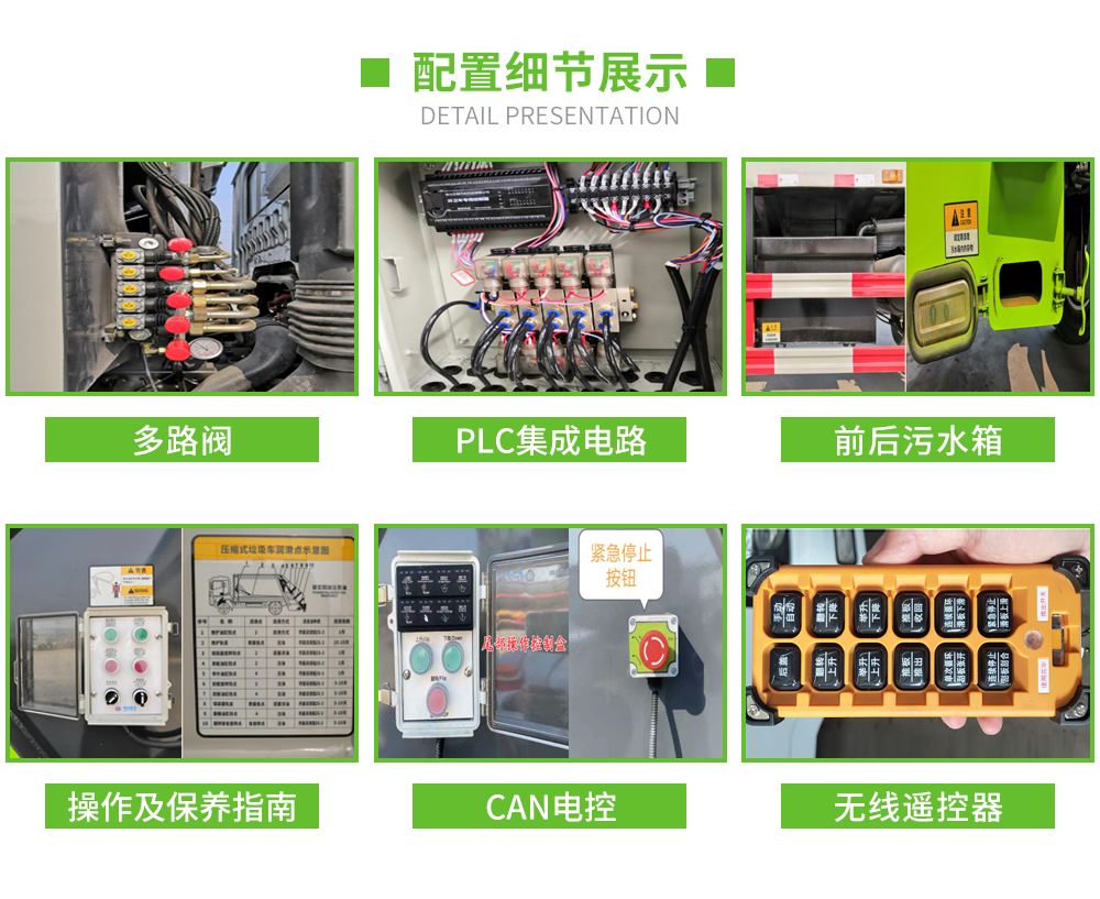 上裝標配:優(yōu)質(zhì)高強度Q345錳鋼制作箱體。雙向壓縮結(jié)構(gòu),帶尾部污水箱,威森搏樂油缸,英國DLI密封圈,威森搏樂多路閥、安徽皖液齒輪泵,CAN手電一體操作模式,帶駕駛室操作,標配垃圾翻轉(zhuǎn)斗或掛桶翻轉(zhuǎn)板。